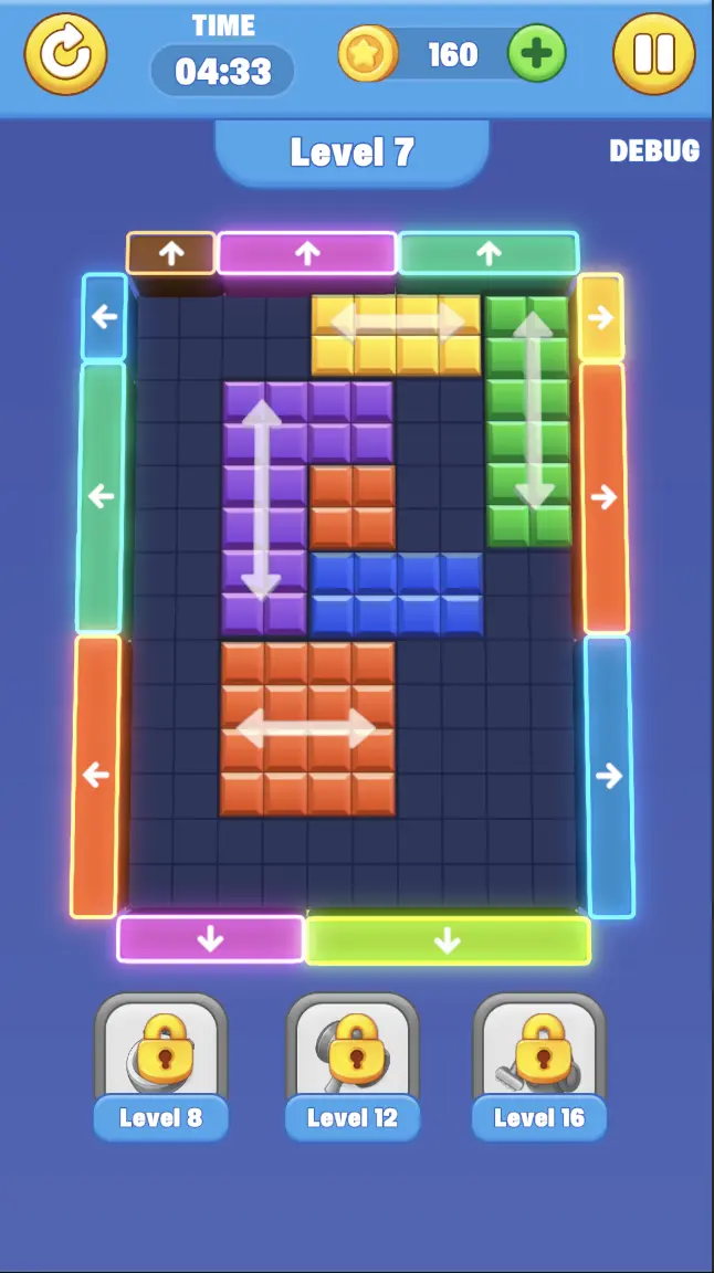Strategic Thinking Required: Players must think ahead and use critical thinking to guide through the colorful world of blocks and achieve success.